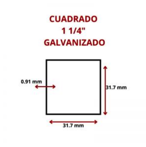 CUADRADO 1 1/4 CAL — 20 — 31.7 MM GALV