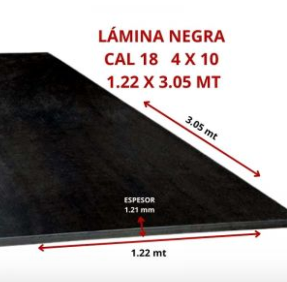LAMINA NEGRA CAL 18 4 X 10 1.22 X 3.05 MT