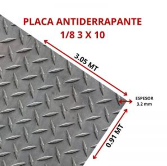 PLACA ANTIDERRAPANTE 1/8 4 X 10 (3.2MM 1.22 X 3.05 MT)