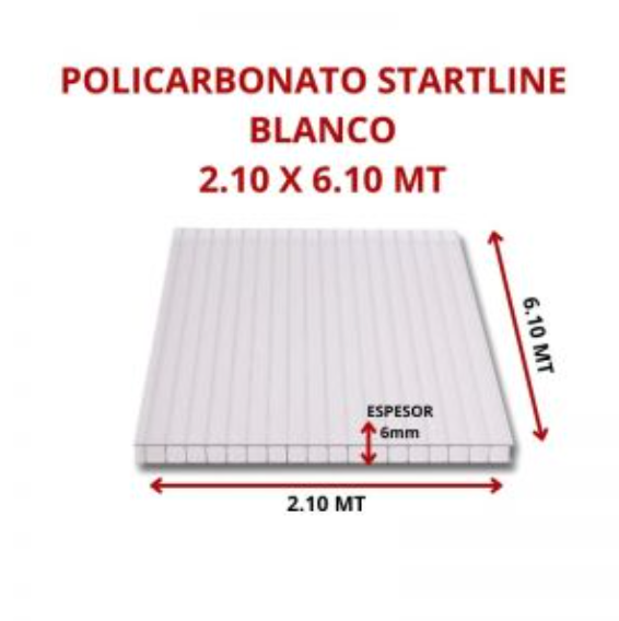 / POLICARBONATO STARTLINE 6MM BLANCO 2.10 X 6.10 MT GARANT 10